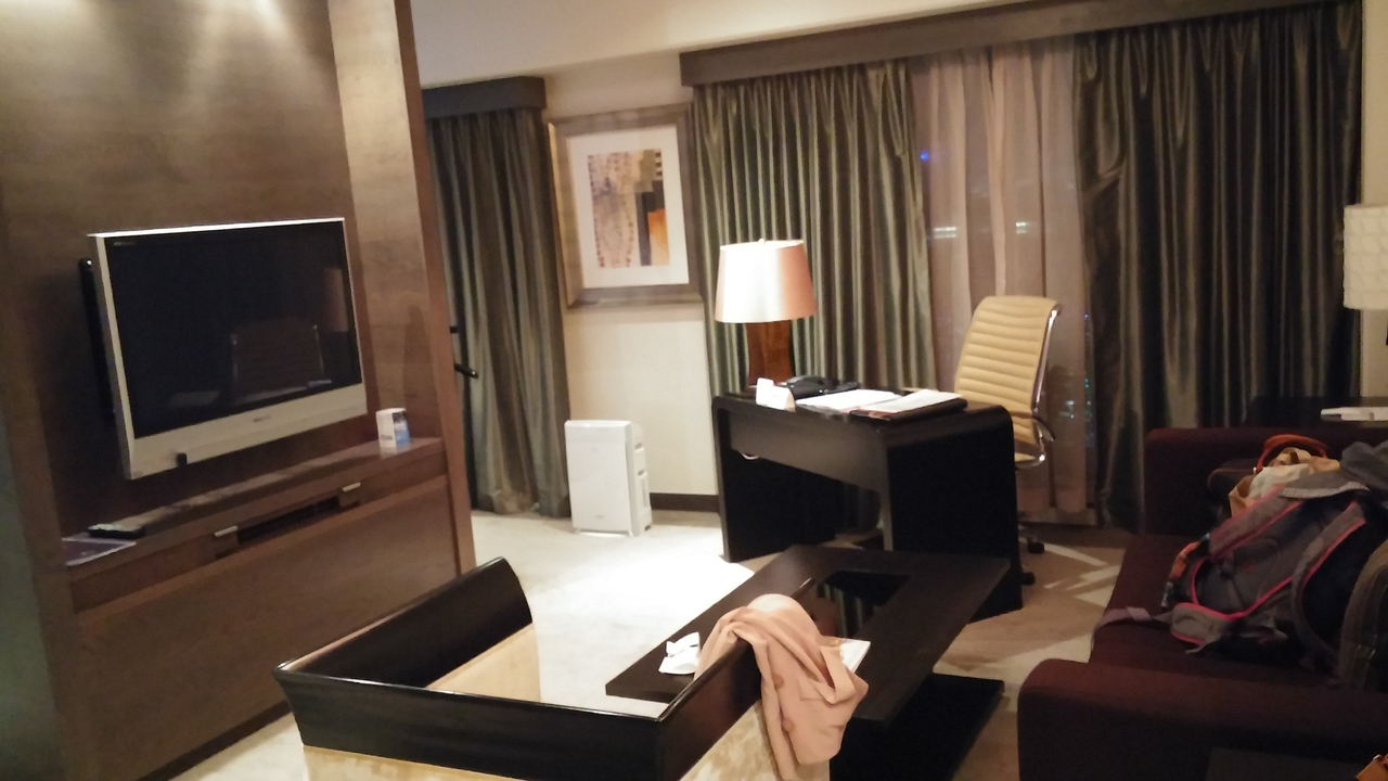 部屋は2部屋つなげたらしい、60平米とかなり広い部屋。TVもソファ側とベット側の2つありました。お風呂も綺麗で広く洗面台も2つあって快適!!あと、都内では珍しくベランダ付きでした!!