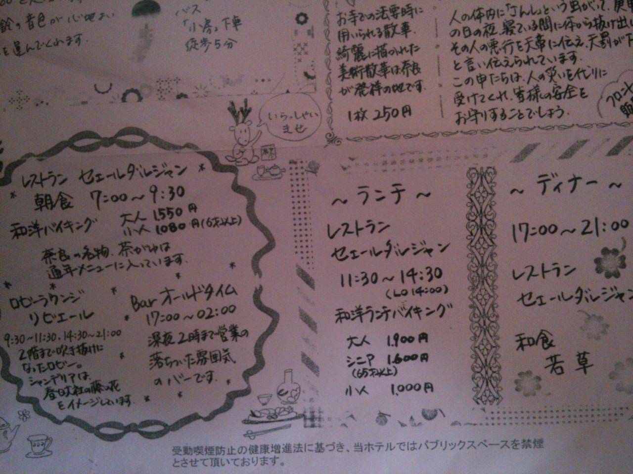 早めに予約したので土曜日に宿泊したにもかかわらず、1泊朝食つきで7500円とお得な値段で泊まれました。お部屋は喫煙ルームに案内されたため、少したばこの匂いが籠っているように感じました。朝食は、和も洋もたくさんの種類があり、プレートに少しずつとりわけられるようになっていました。奈良の茶がゆがとても美味しかったです。