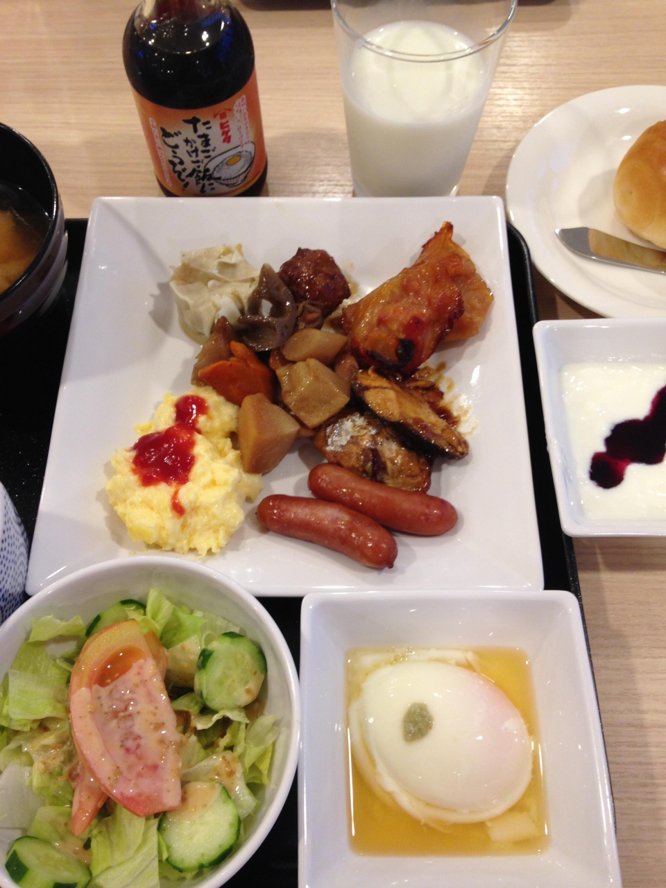 バイキング形式の朝食は、品数こそ必要最小限だが全てに満足できるものでした。特につみれ汁とカレーと濃厚な牛乳が美味しかった。何より従業員さんたちの元気な声が朝から気分が良かった。唯一残念なのは、パンを焼くトースターが無かったことぐらいです。
