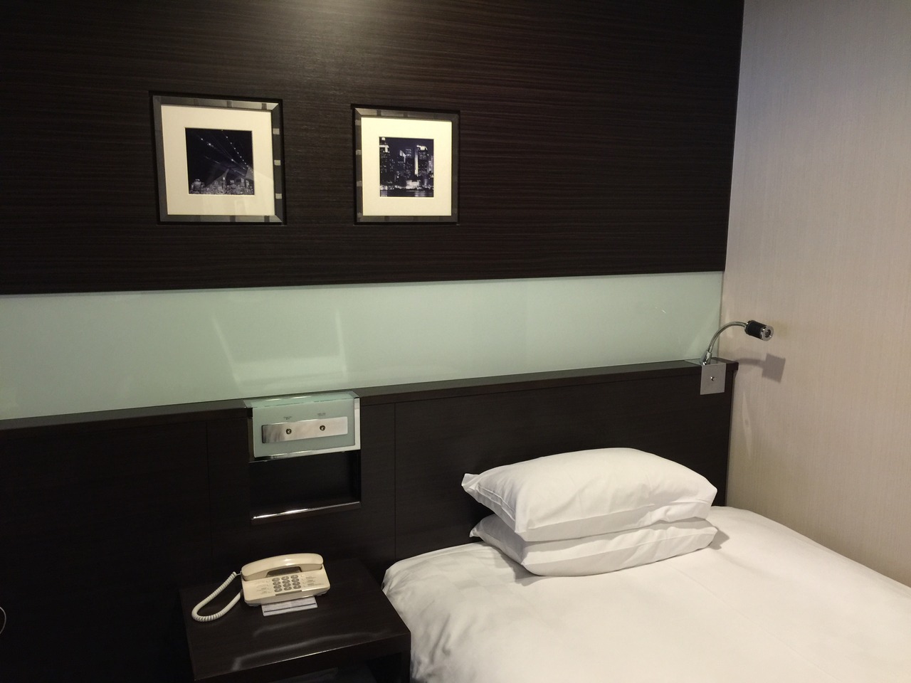 部屋は普通のビジネスホテルだが、アメニティー類は悪くない。窓からゴジラが見えた笑