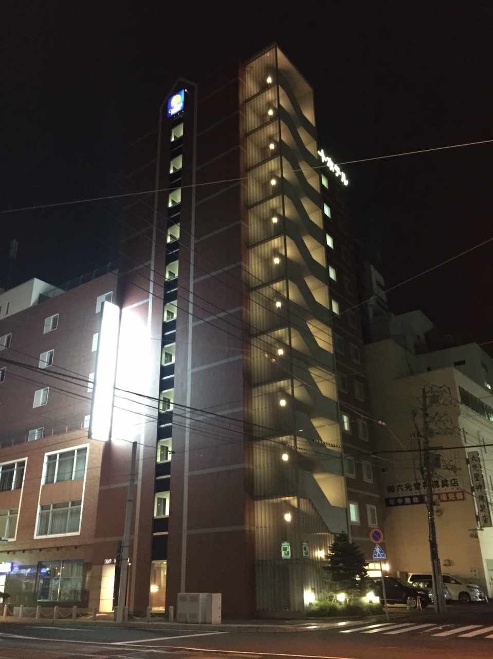 函館駅から徒歩で5分掛かりません。部屋は狭いものの、まだ新しさが感じられて、かつ清掃も行き届いていたので快適でした。唯一残念だったのは朝食で、周りのホテルが軒並みイクラやイカ刺しを出している中でアメリカンブレックファーストというのは味気ない気がしました。