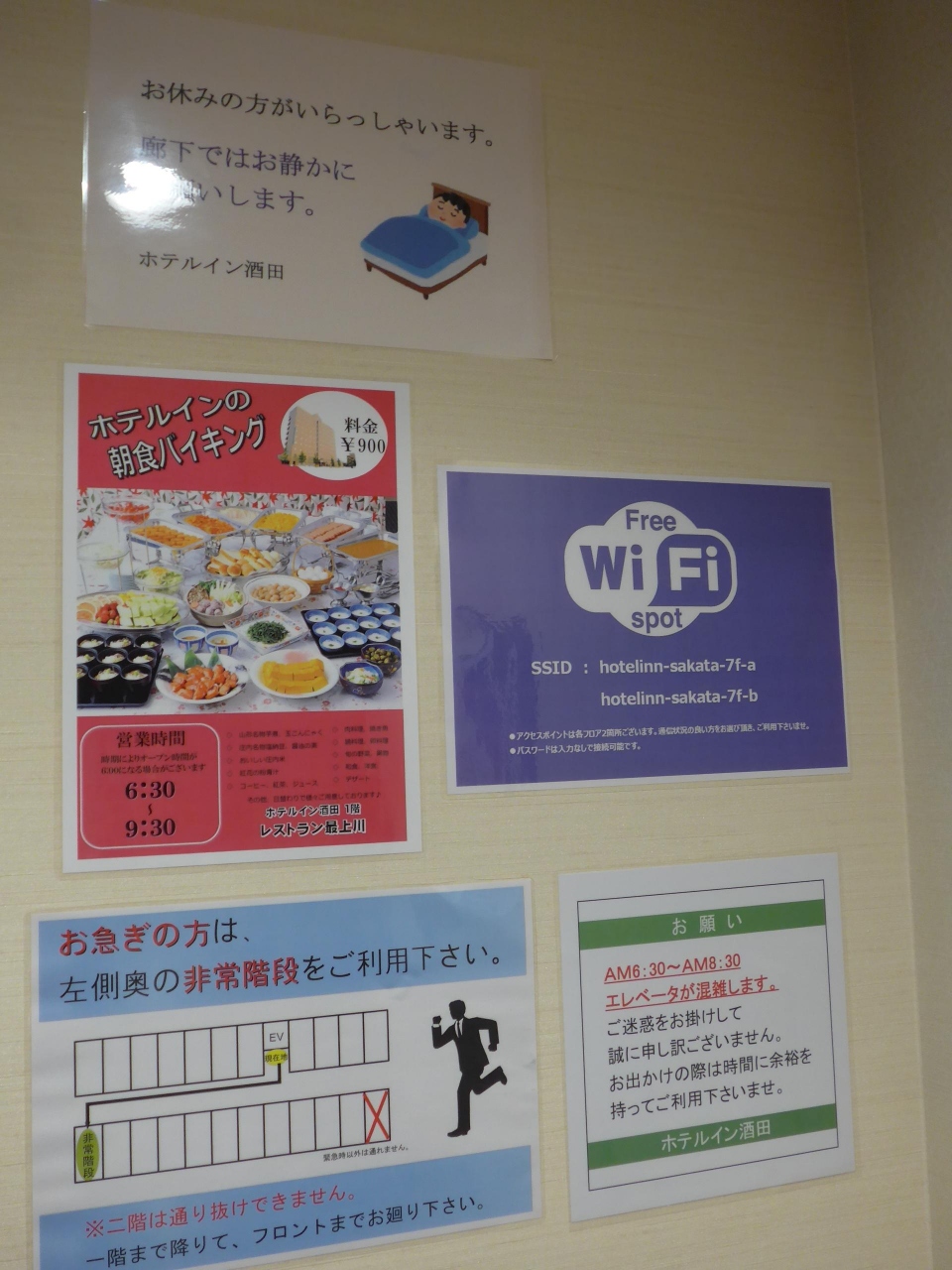 前回は当ホテルの駅前店を利用しましたが趣を変えて今回はあきほ町の当ホテルにしました。近くには国道7号線にあるイオン酒田南店があります。