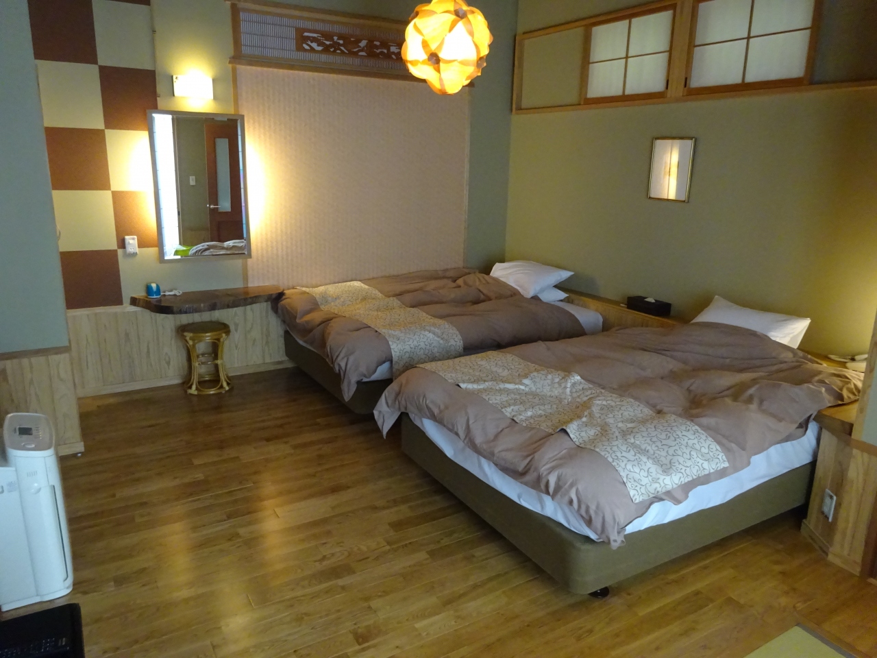 お部屋は適度な広さの和洋室で、休憩室に一番近い部屋だったので便利でした。ベッドが立派です。