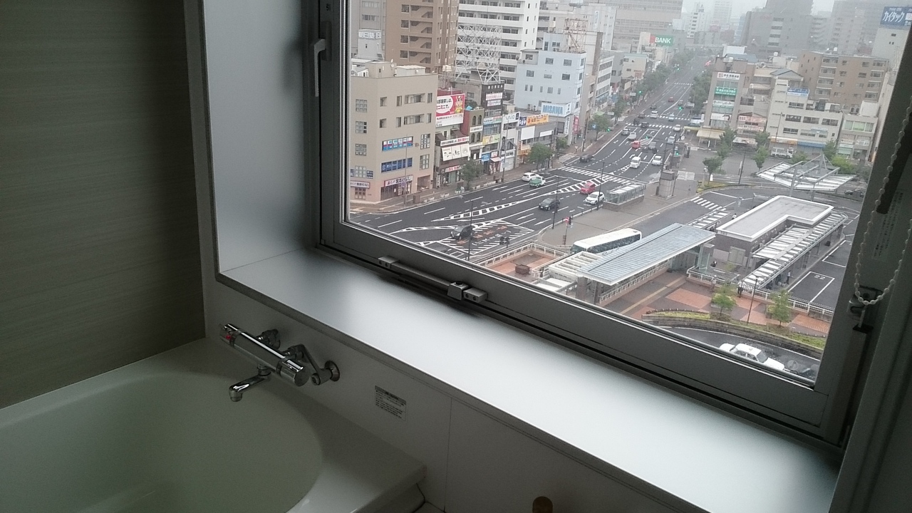 浴室はセパレートで広く、ブラインドを開けると遠くに新幹線が見えました。