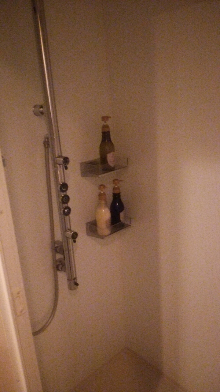 浴室はシャワーしか設置してなく、バスタブはありません。とても狭いのですが、シャワーが斬新な最新式?でボディシャワーまで付いていて、上部から出るシャワーは大ヘッド