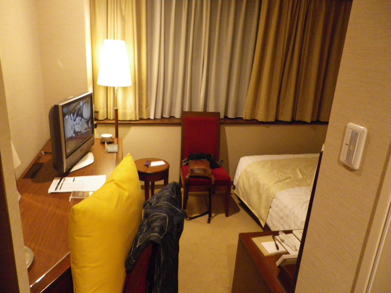 岡山市中心部からやや離れた山の中にあります。無料巡回しているバスで、岡山駅まで行けるので宿泊しました。部屋は普通のシングルルーム。テレビは小さめです。立地から考えると、岡山市内のもっと立地のいいホテルのほうがお勧めです。