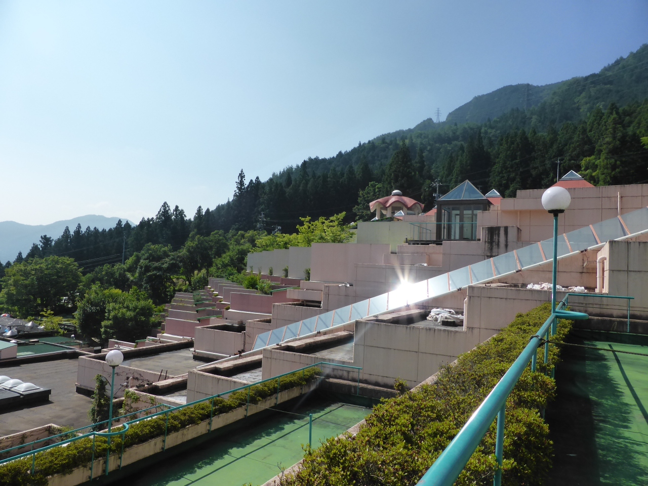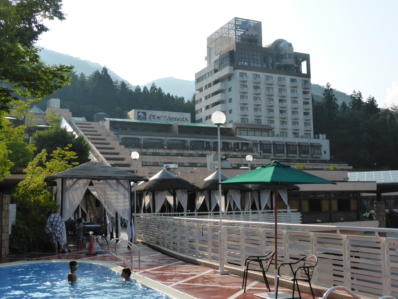 一言でいうと「バブル全盛期」という感じでしょうか。建物の造りからとても派手な印象を受けました。施設は老朽化が見え、隅々はホコリがたくさんありました。少し掃除が行き届いていない感じがしました。滞在中大変困ったのが、フロントから部屋へ行くエレベーターが2基しかなかったこと。しかもケーブルカーのような造りは面白いのですが、とても狭いので数人しか乗れず。部屋は6階だったのですが、結局階段を上り下りすることが多く、とても不便でした。また、部屋の布団が大変薄く、今まで訪れた宿の中ではサイアクでした。腰の悪い私には大変寝苦しかったです。