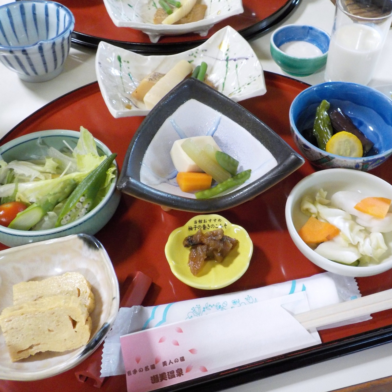 朝食は薄味で健康的、地鶏タマゴが美味しかったです。