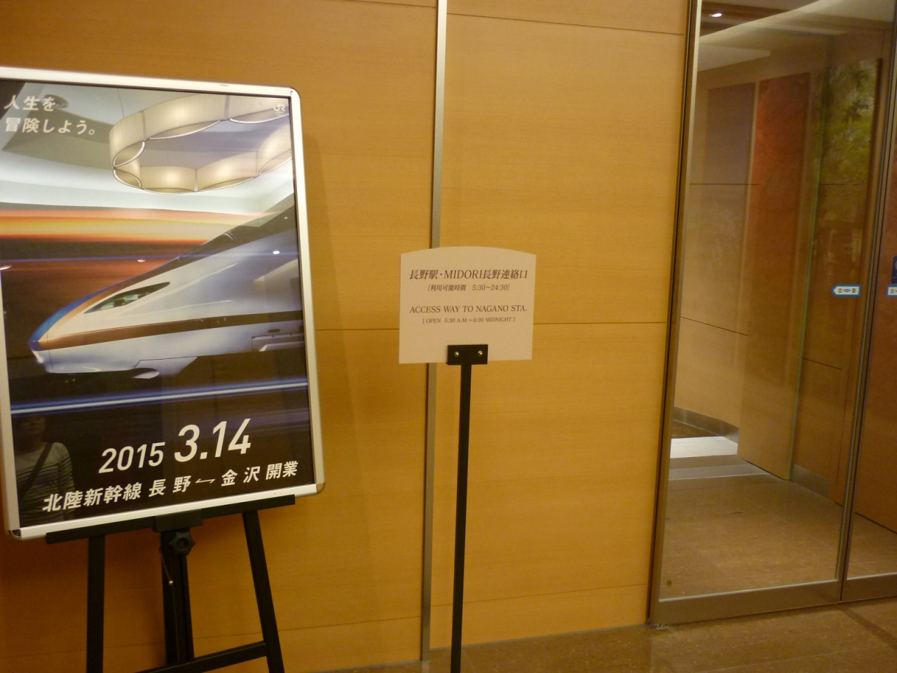 このホテルは、長野駅と直結しているので便利である。コンコースからショッピングモールを通って、直接、ホテルに入ることができる(ショッピングモールが閉まっていても5:30から24:00まで通り抜けることができる)。