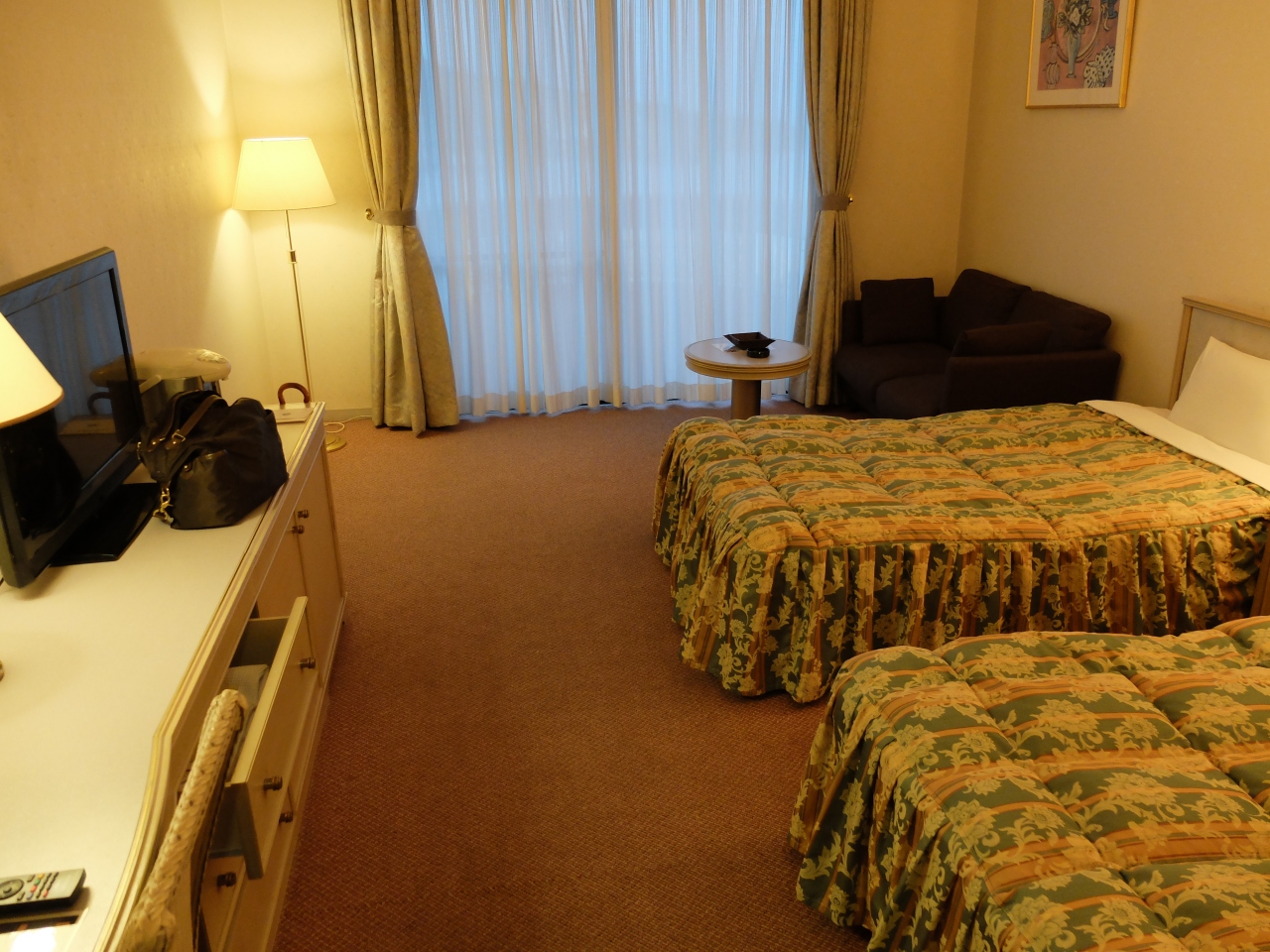 ベッド数に比べずいぶん広い部屋です。同じ面積でトリプルルームにできそうな感じです。荷物を置くスペースも十分あります。