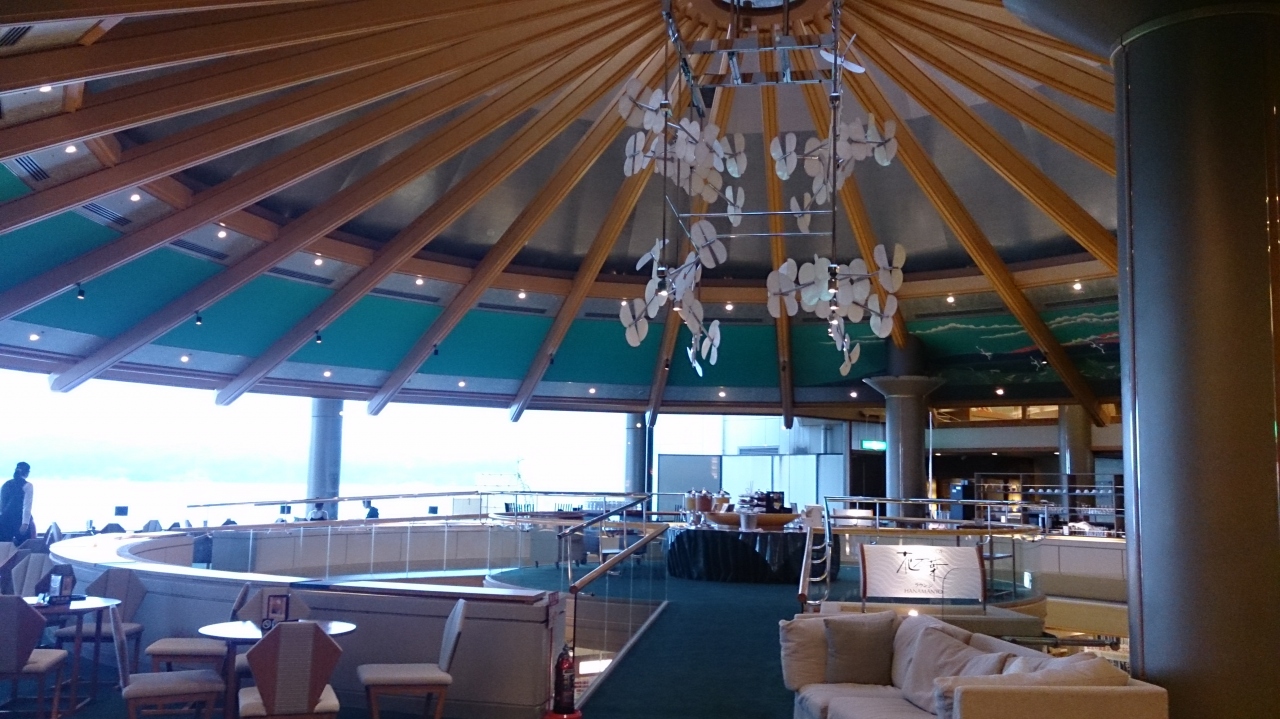 ホテルは能登半島の付け根に位置していて、ロビーに入ると前面に湾が見渡せる。