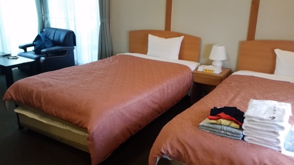 ツインのベッドでしたが、夕方に上の子の分のエキストラベッドを出してくれるということで、食事に行っている間に、エキストラベッドをもう一台出していただきました。