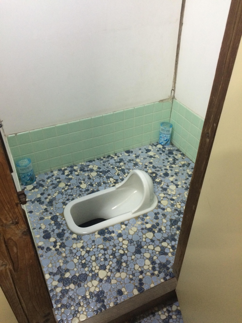 トイレ、洗面所は共用で、男女の別もありません。。。しかも非水洗。