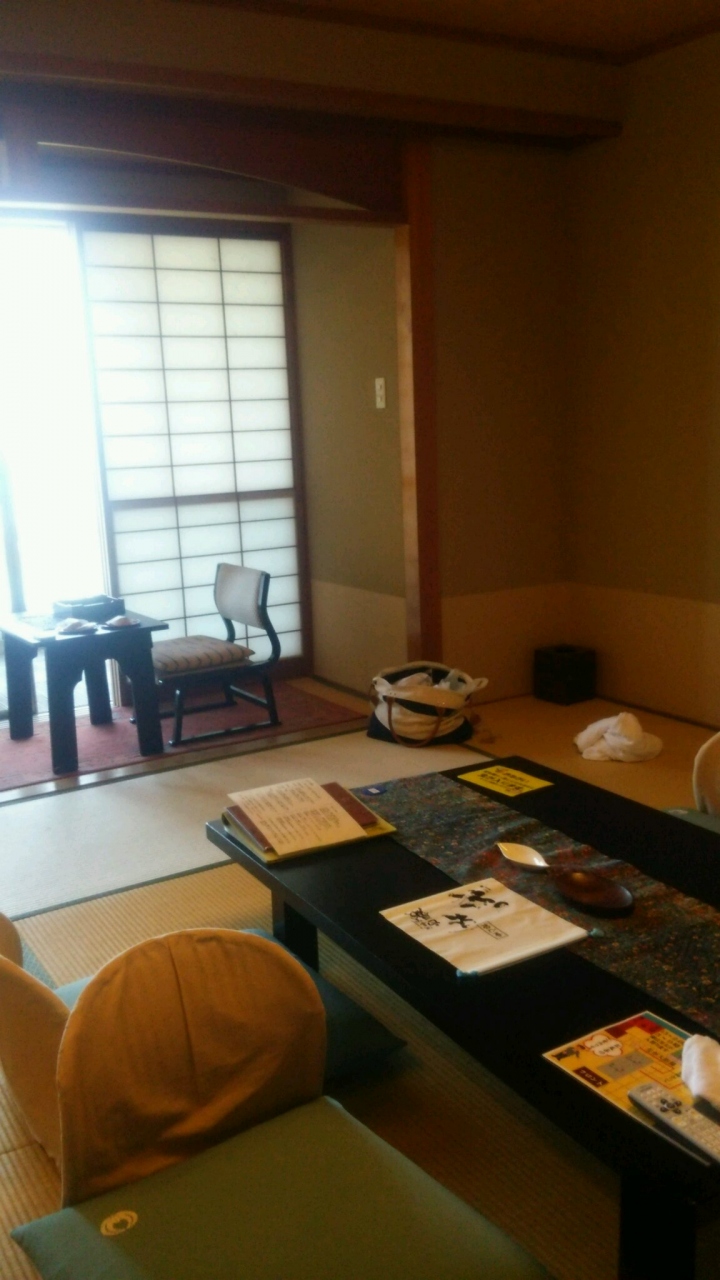 会社の慰安旅行で皆生温泉に行って来ました。泊まったのがこのホテル。靴を脱ぐと床ではなく畳のフロアーがあり大きなドラえもんのぬいぐるみが迎えてくれます。エレベーターに乗って部屋へ。エレベーターの中の床も畳でした。部屋はオーシャンビューでベランダが気持ちいい