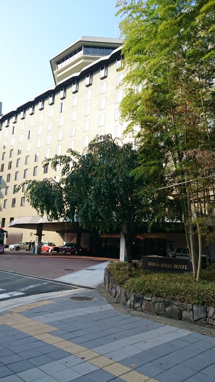 ビックカメラの前を通ってアパホテルの横を通って突き当たりを右→左と細い道を歩いて行くと、「リーガロイヤルホテル京都」の正面に出ます。