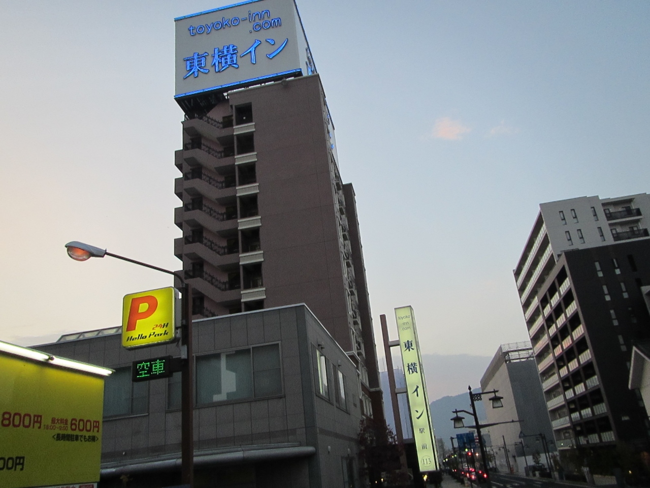 上田駅お城口から徒歩約2分のところにあるビジネスホテルです。入口はいったところのロビー部分は比較的狭く、エレベータも一台しかないため、朝食時には混雑が予想されます。ロビーの狭さから、客室の床面積も狭いのかと思いきや、ベッドとテレビの間などは意外にゆったりしているため、思ったよりも居心地は悪くありません。