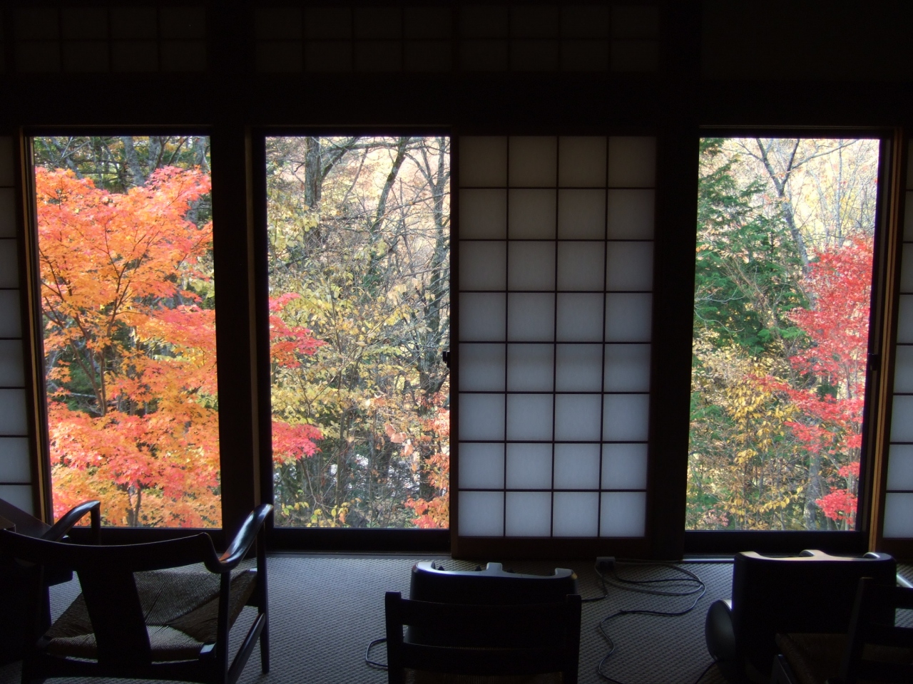 部屋からお風呂までは、迷路のような長い廊下を通らなければならないが、そこからの紅葉の景色も最高。