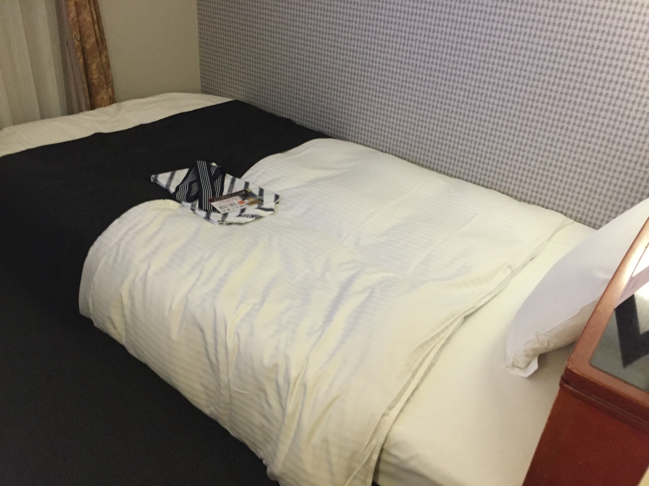 - すごく狭いシングルだけど、ベッドも広くて快適。