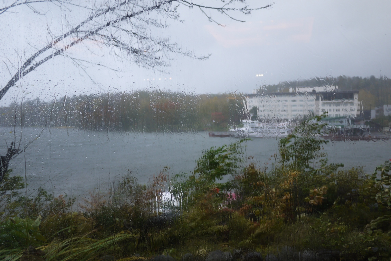 帰りは台風の中、離れた屋外駐車場まで大きな荷物を持って送迎バスで全員移動するよう指示されました。