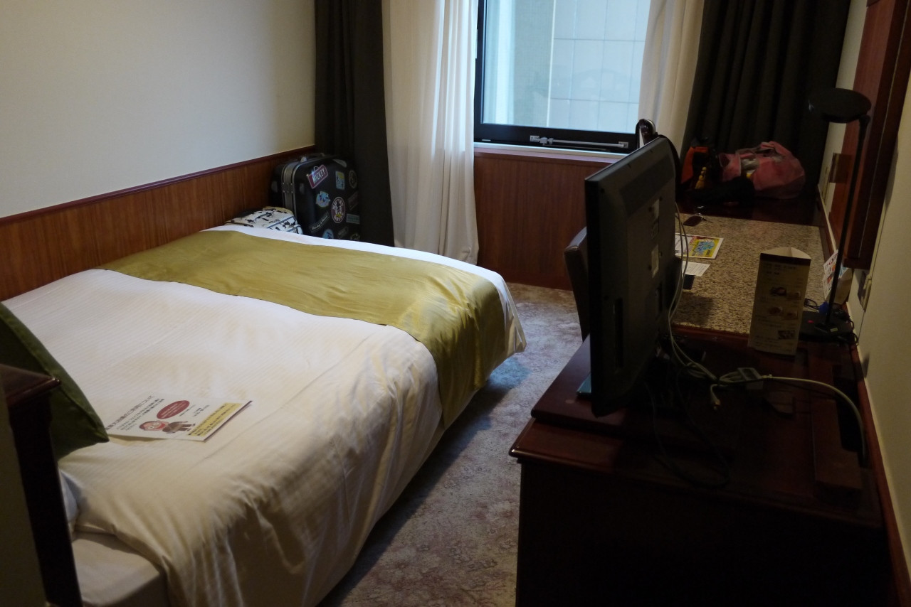 セミダブルのプランなので狭いのは覚悟していましたが、ベッドの真横にテレビが配置されていたりと二人利用ではかなり窮屈でした。