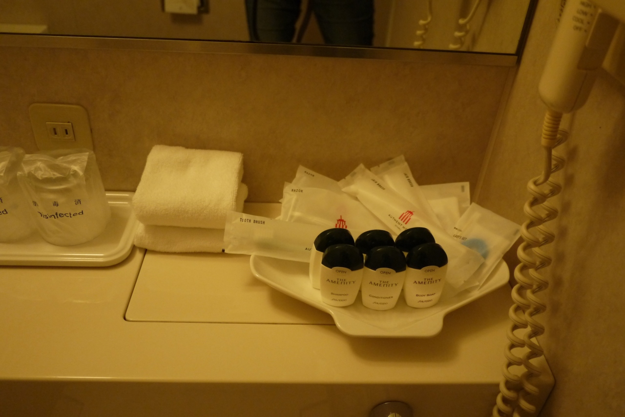 部屋のアメニティーが小さなボトル入りになっているのはちょっとうれしいサービスでした。