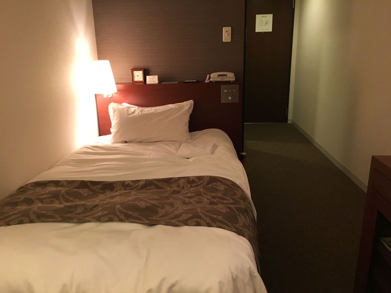 シングルルームに泊まりましたが部屋は必要なものが揃い、持ち込み冷蔵庫は最初から電源が入っており、ポットにもお湯が沸いていました。ベッドは硬めです。