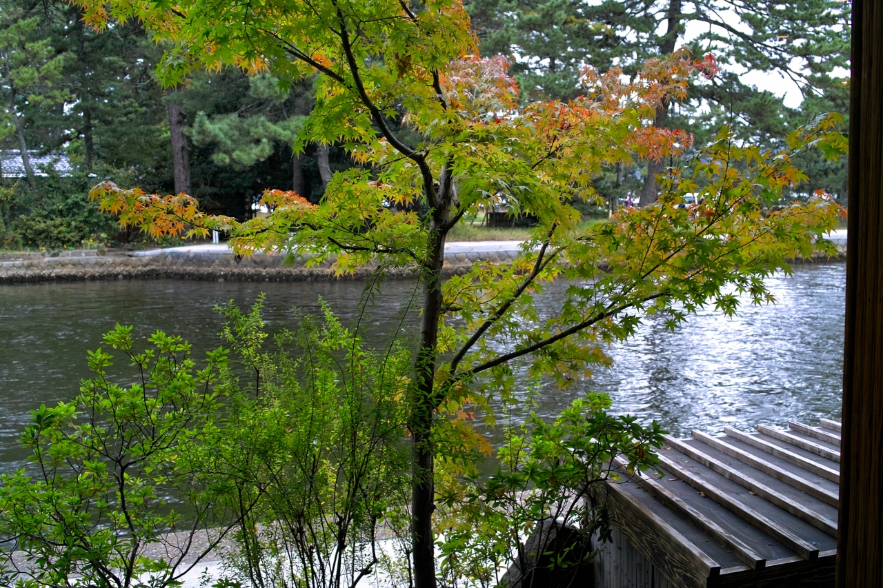 天気が今一つで、期待は日本海の海の幸。事前のリサーチで候補だったランチ先の1つ、対橋楼に寄りました。なかなか老舗な雰囲気で、窓からは外海と内海を繋ぐ水路が望めます。