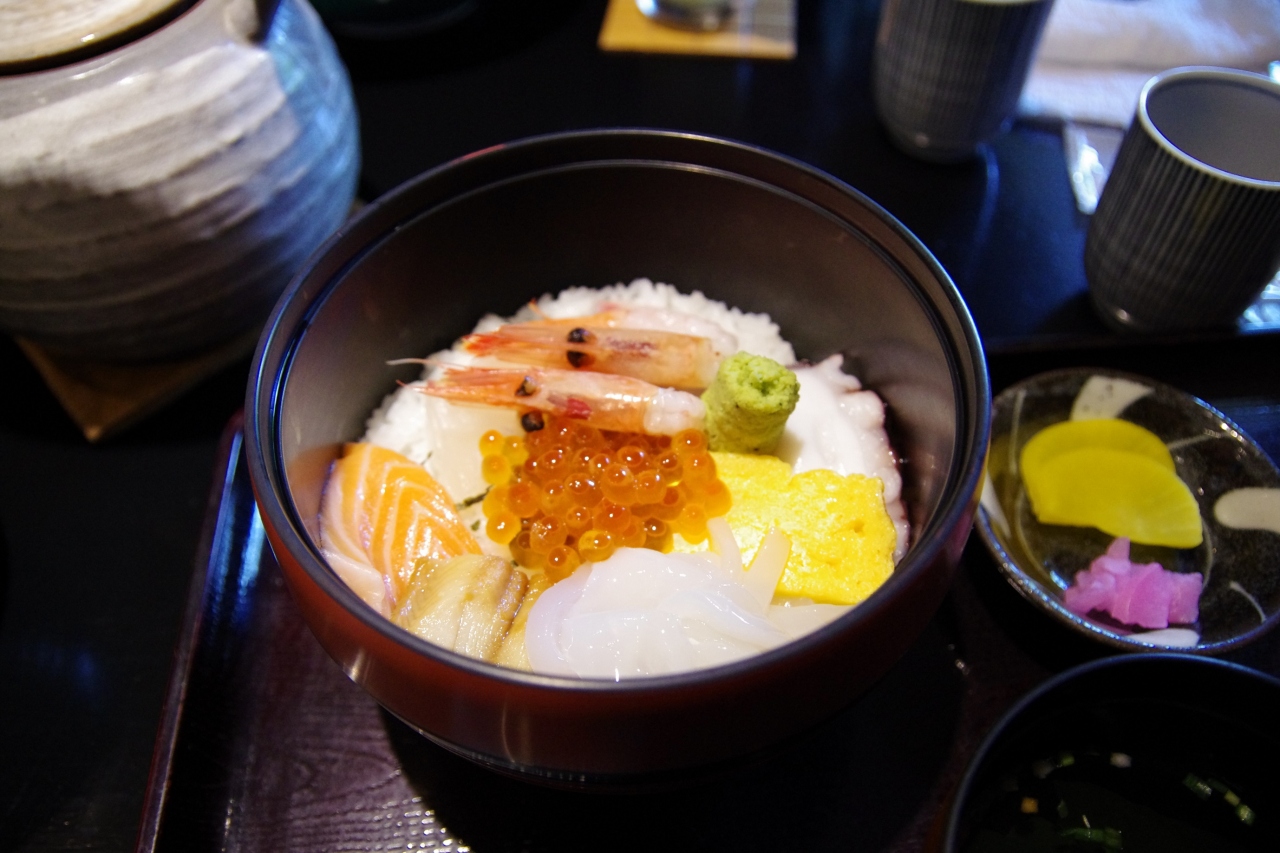 メニューはいろいろあって迷いますが、ここはやはり海鮮丼に。ちょっと量が少なめで物足りなさ感があったものの、イカが実に美味く、まずまずの満足度です。