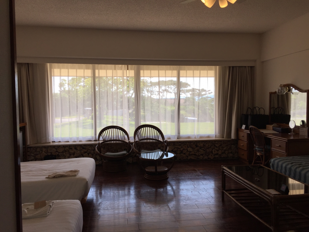 部屋からセンター棟や大浴場、プール、ビーチに出るにはかなり距離があるので、カートを借りたほうがいいと思います。