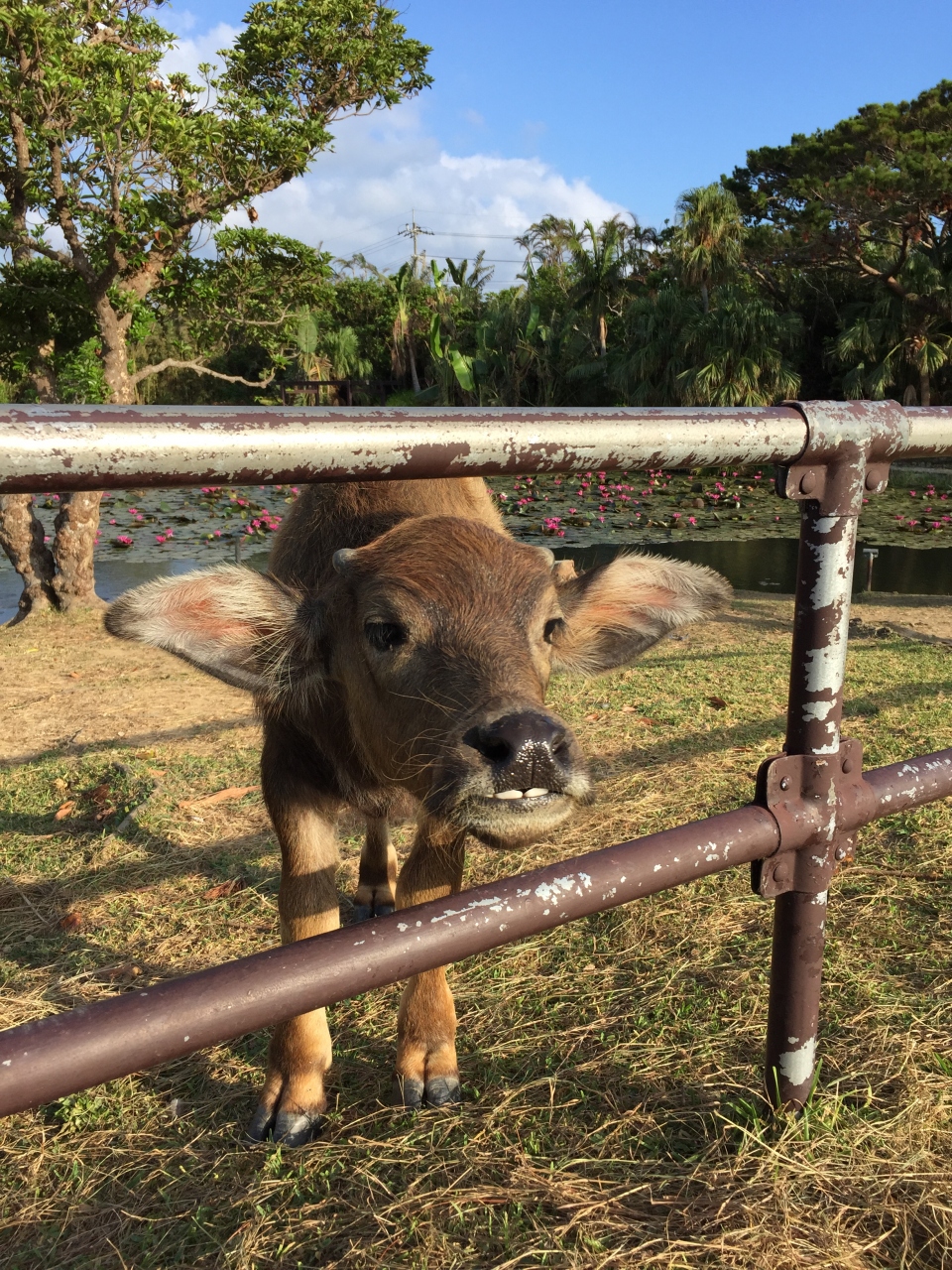 敷地内には蓮池に水牛がいたり、触れ合えるヤギもいるので、家族連れで楽しめます。