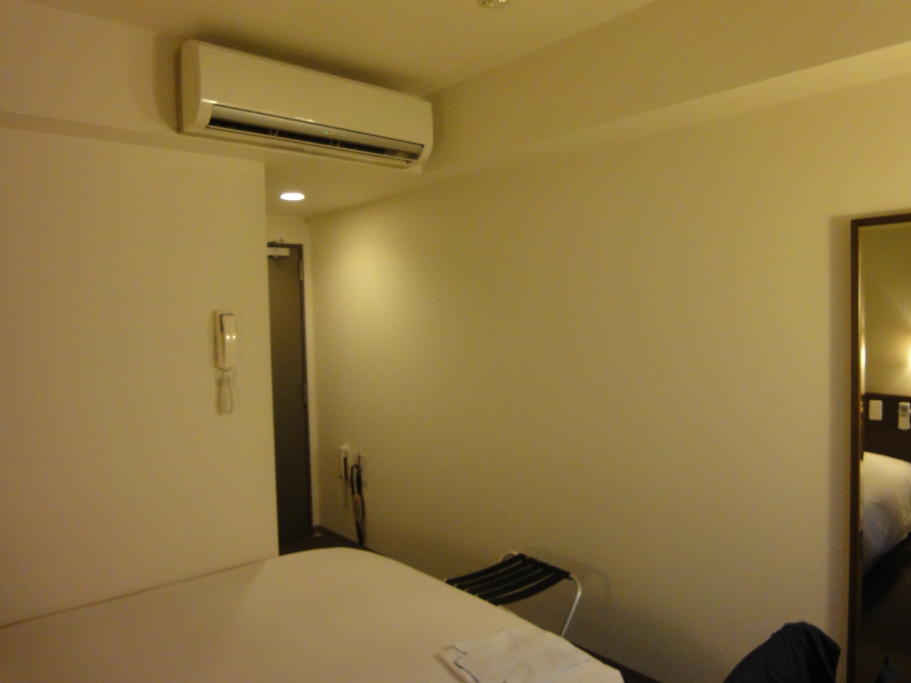 ベッドが大きいため部屋が少し狭く見えるかもしれませんが、十分な広さです。机も大きく、ユニットバスもシングルにしては十分です。ただ、窓が上部にあり斜めににしか開きません。室内に入ったらすぐカーテンを閉めてしまう人なら問題はありませんが、窓の外の景色を楽しみたい人には不向きだと思います。