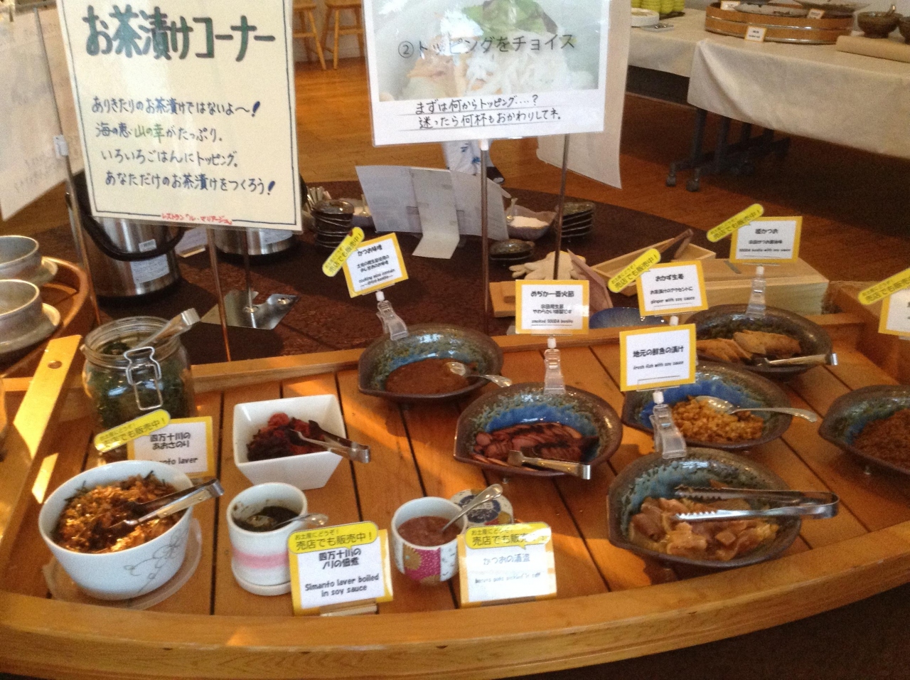 一覧を見る朝食のお茶漬けコーナーでトッピング