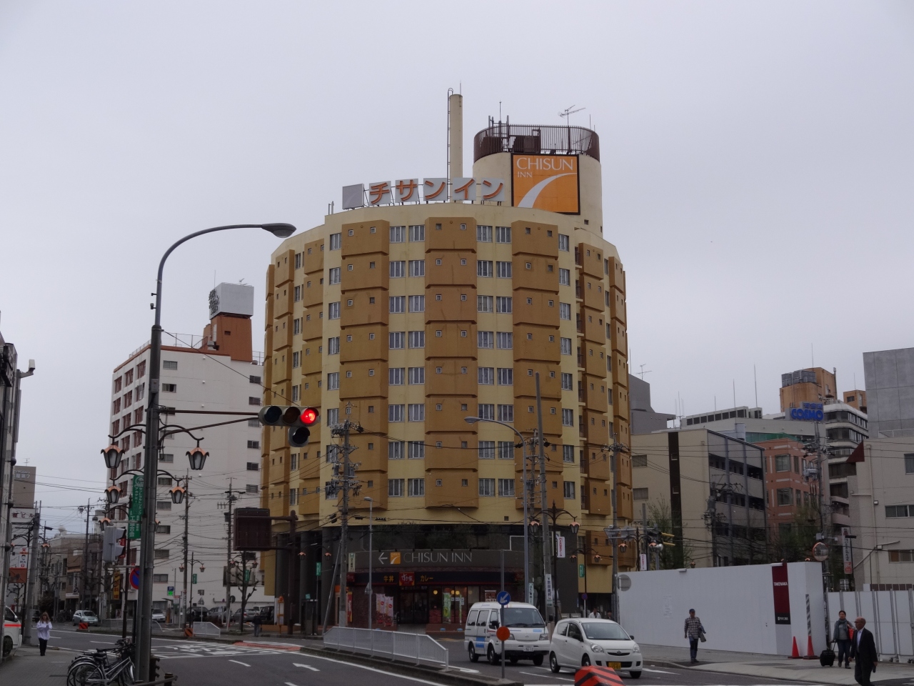 円筒形のホテルで内部はカタツムリのように部屋が放射状に割り当てられていた。壁も薄く、部屋の風呂も狭い。どこかの企業の研修生などを対象としたシングルの部屋が多いような感じで、夜は朝方まで五月蠅かった。シングルとファミリールームの階が分かれて居れば良かったのだが。ただ、新幹線口から近いのはよい。