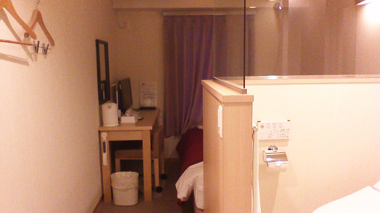 客室は、狭いですが清潔で、ユニットバスを使わない人には機能性シャワーだけのこの部屋は最適だと思います。