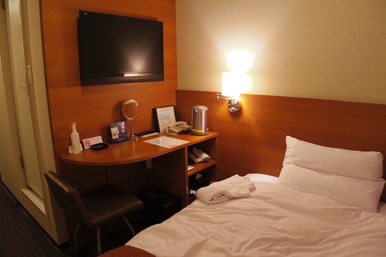 エアコンは冷房と暖房の切り替えは出来ず、この季節は暖房のみ。部屋の場所にもよるが、窓を開けたら隣のビルの壁だった。ベッドから窓際に寄りかかってTVを見る位置にクッションが設置されていたので背中は痛くならなかった。