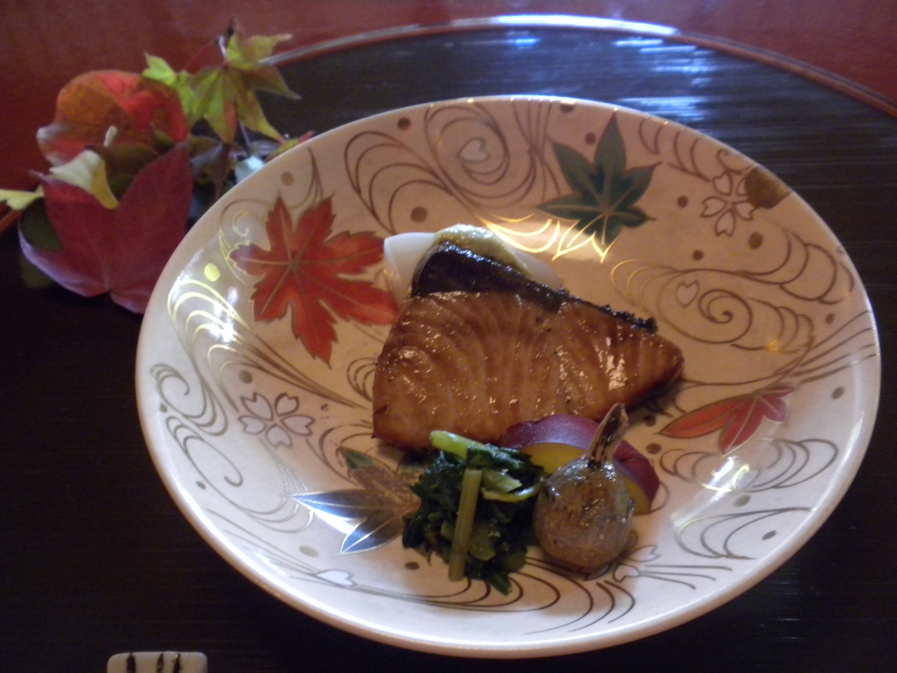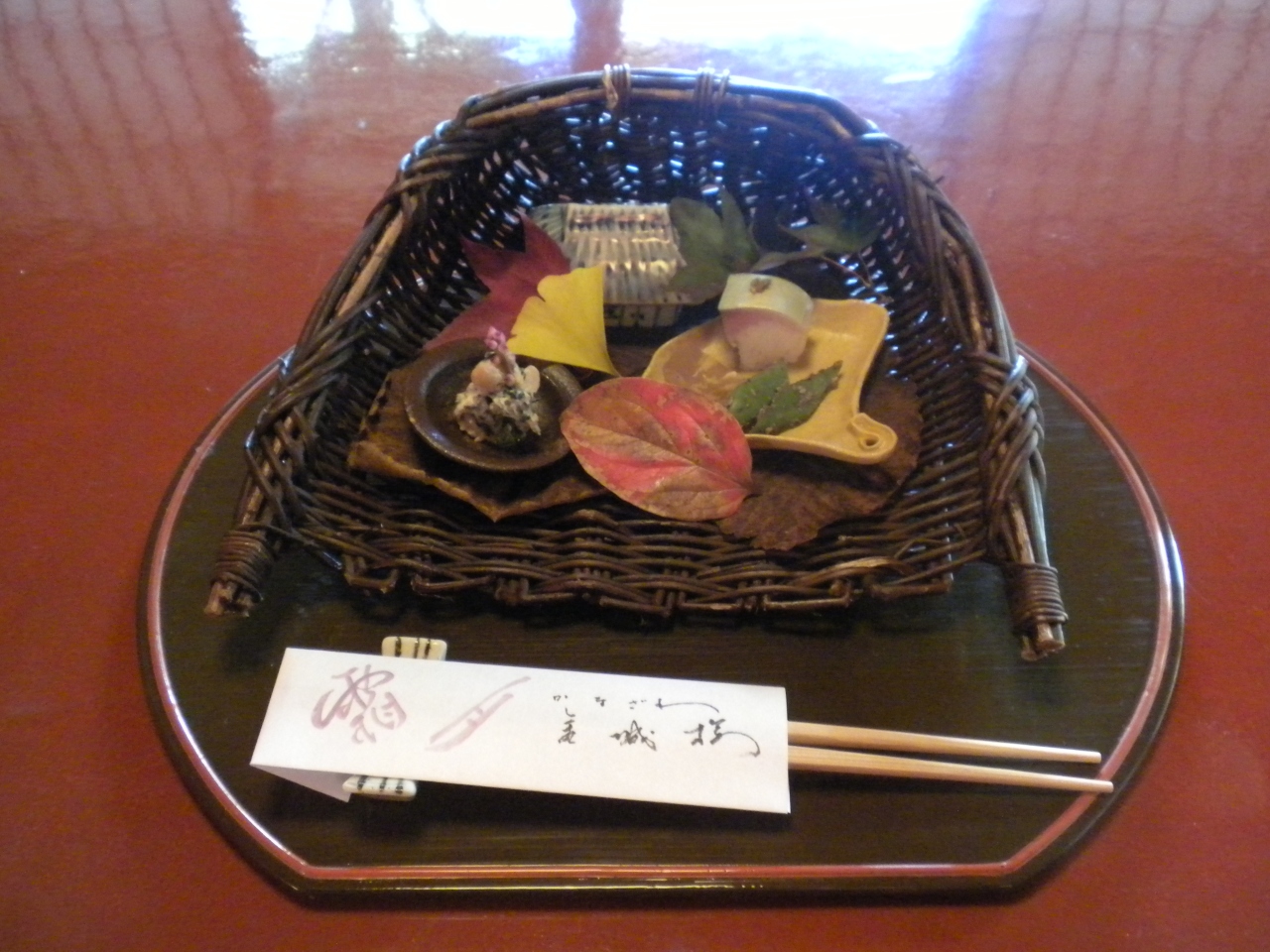 これは食べ散らかさずに半月盆の端に寄せて最後まで残しておいて季節感を楽しむものだと…は、京都の料亭で教わりました。