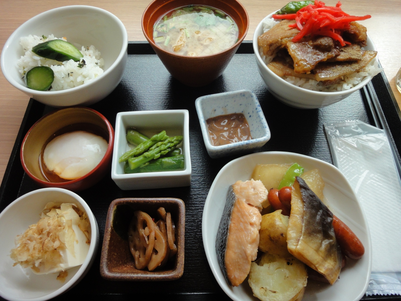 朝食バイキングの豚丼もなかなかおいしかったです。紅ショウガはもちろん、コショウも少しかけるとおいしいですよ。あとは、道内の他のドーミーと同じようなオムレツ、炙り焼き、塩辛などの小皿でした。窓に面したカンターがありゆっくり外を眺めながら食事ができました。