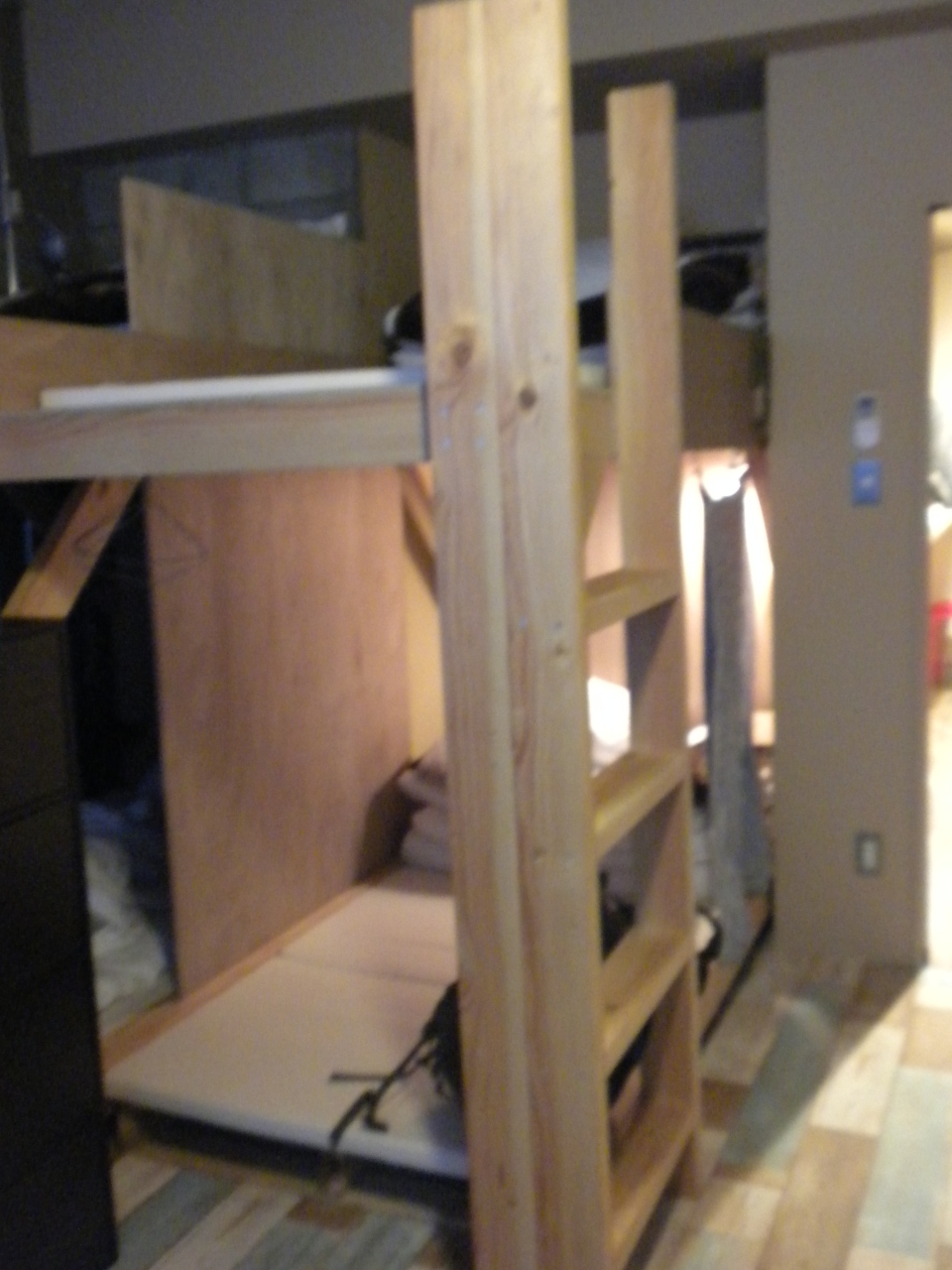 男女構わず一部屋10人を2段ベッドのお部屋に収納です。