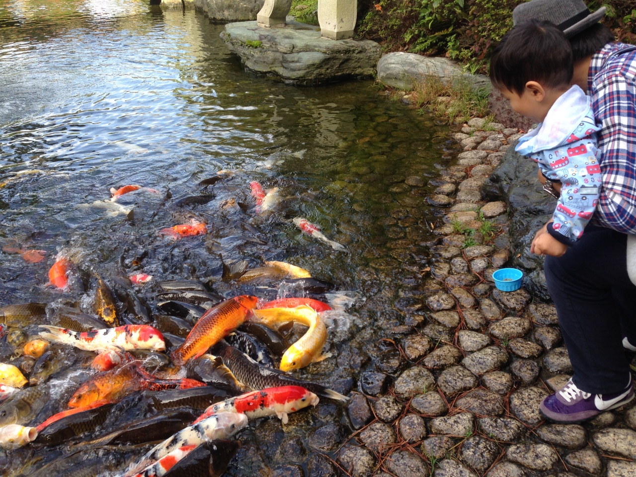 また、お庭の鯉がすごいです。幼児は半狂乱で喜ぶと思います。