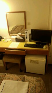 申し訳ない程度に机の上に「この部屋は禁煙です」と。