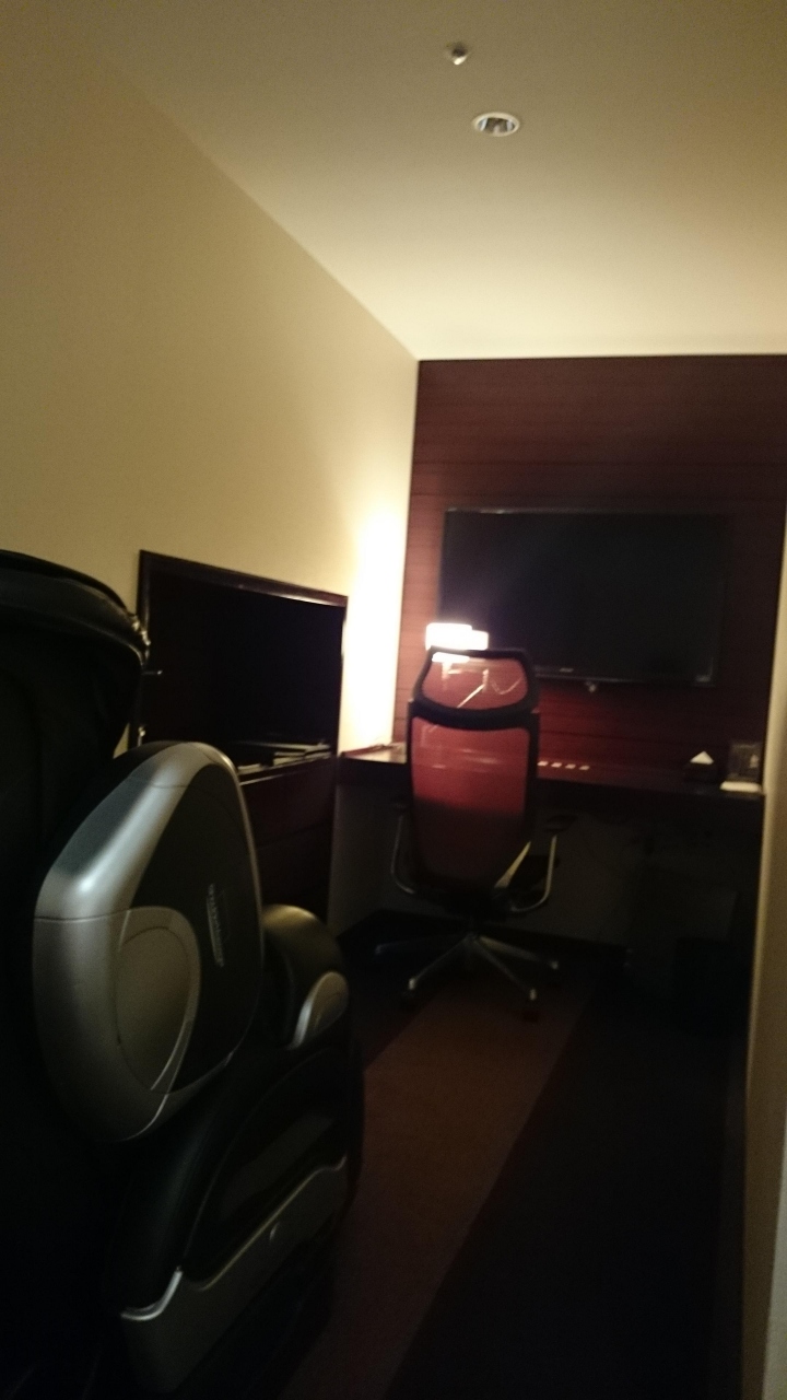 お洒落なマッサージチェアもあって、くつろぐこともできますし、書斎風に奥まったところにデスクと座りやすいメッシュチェアもあるので、お仕事される方にもピッタリだと思います。