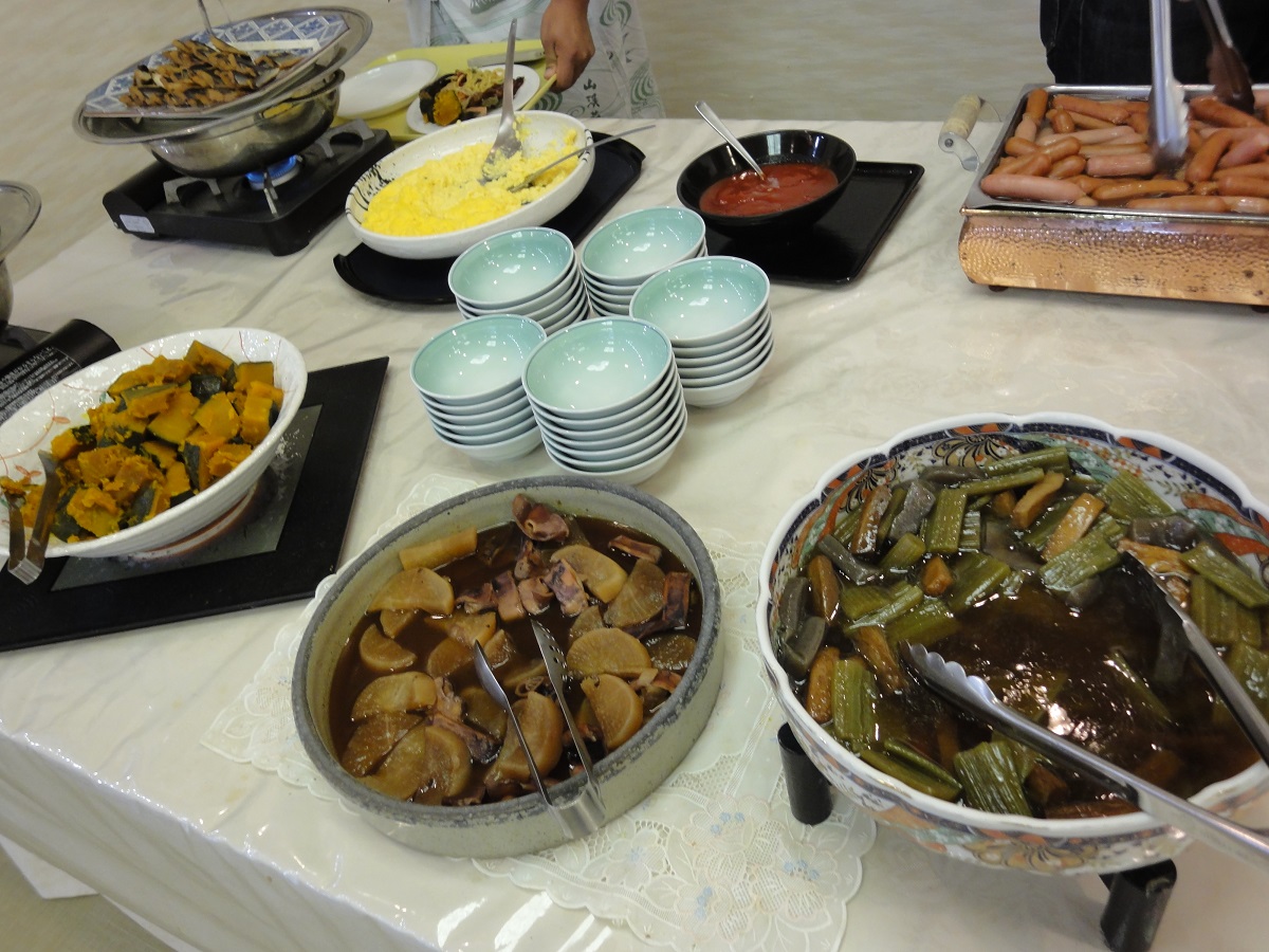 写真は朝ごはんのバイキングです。もちろんもっと種類は多く迷ってしまうほどでした。ホテルの外観は年季が入ってるかなと思いましたが、部屋は綺麗に手入れされていてお食事処も可愛い飾り付けがあってすごく良かったです。美味しい食事をして温泉に入って畳でゴロゴロ、子連れでもゆっくり出来て楽しめました。