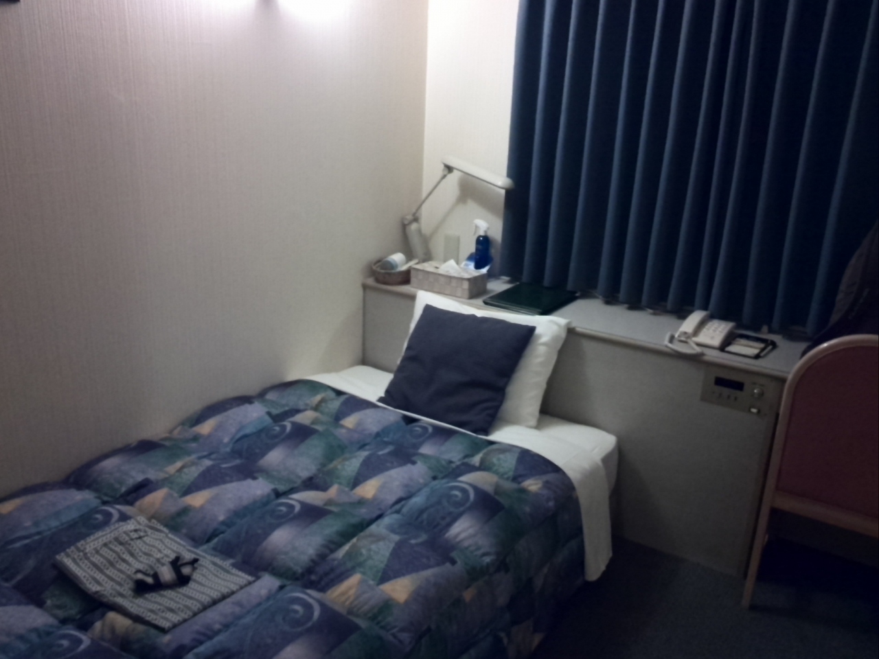 ホテルは古くて部屋はそんなに狭くはないのですが、スペースに何もなく、無駄にちょっと広いという感じで、逆にニユットバスがすごく狭くて、風呂にもつかってもむのんびりした気分になれないほど窮屈でした。