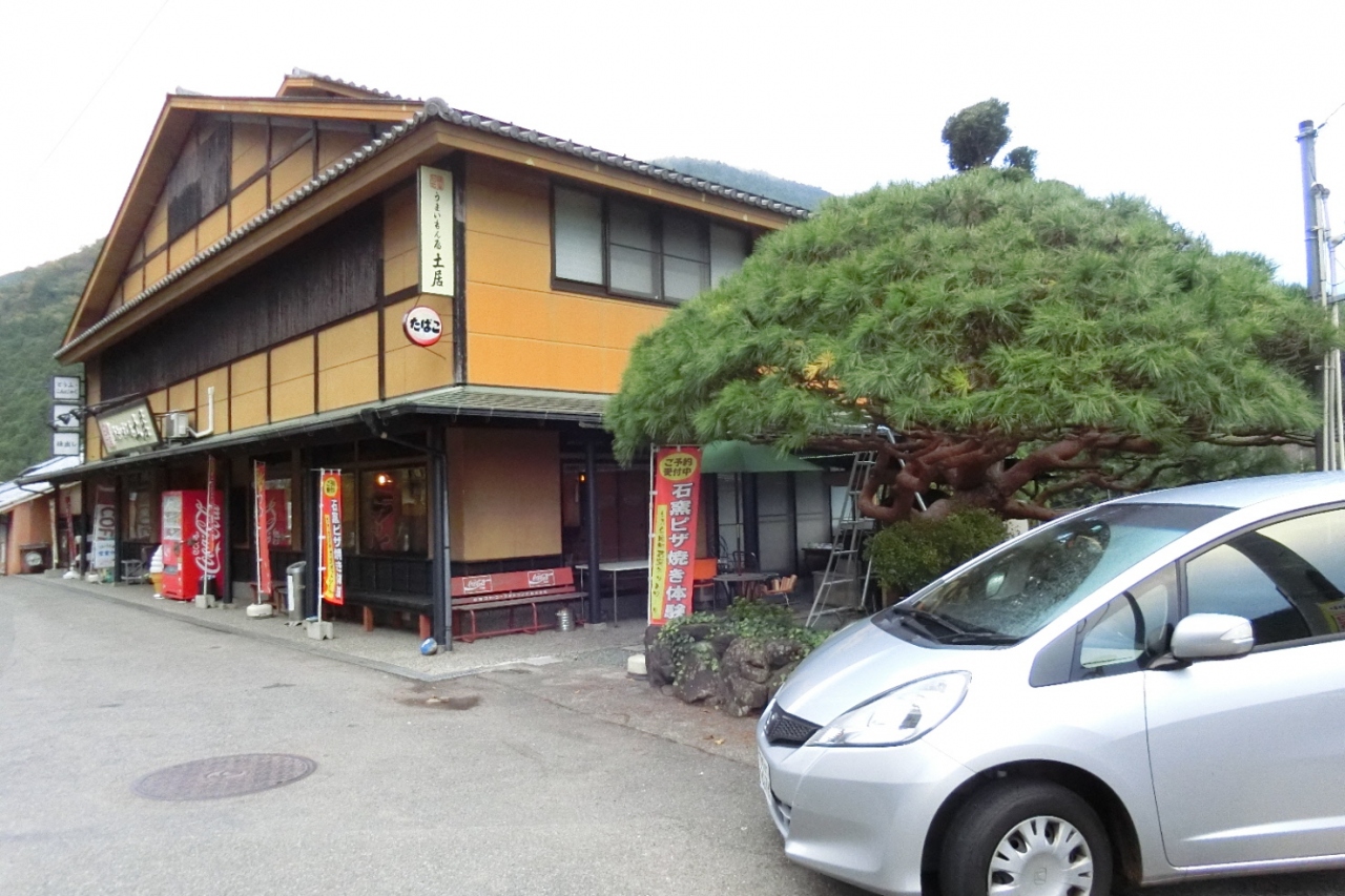 四国カルストが目当てだった。近くに国民宿舎など宿泊できるところはいくつかある。しかしありきたりの泊まりでなく、あえて民宿を選んだ。四国カルストから車で下ることおよそ30分。「土居商店」というコンビニ兼食堂のような建物が目じるし。この家族が民宿もやっているのだ。