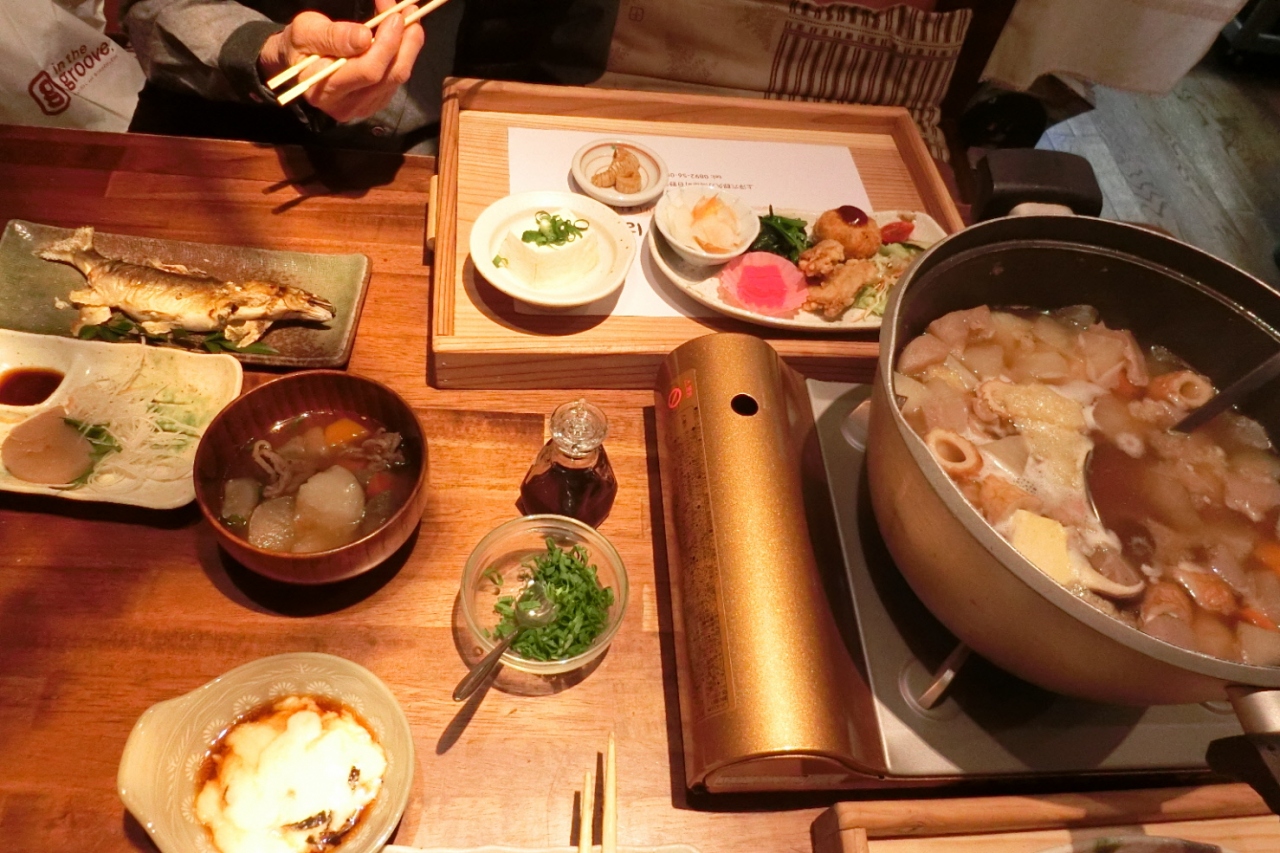 ご夫婦と話がはずみ、食事も長引くがそんなことはおかまいなし。あげくはご主人のサービスで焼酎をいっしょにいただく始末。