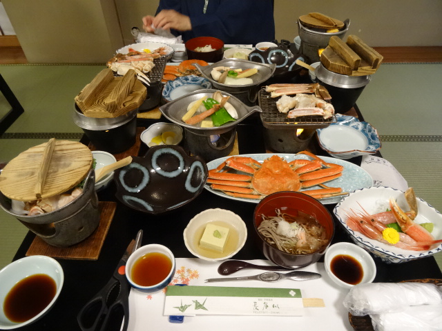 カニ料理付きのホテルを選んで決めました。カニずくしで夕食はカニさし、焼きガニ、カニ鍋(すき?)とってもかにずくしを楽しめました。温泉大浴場、露天風呂は時間を外せば貸し切り状態。あらわ温泉の一般的なホテルだと思います。