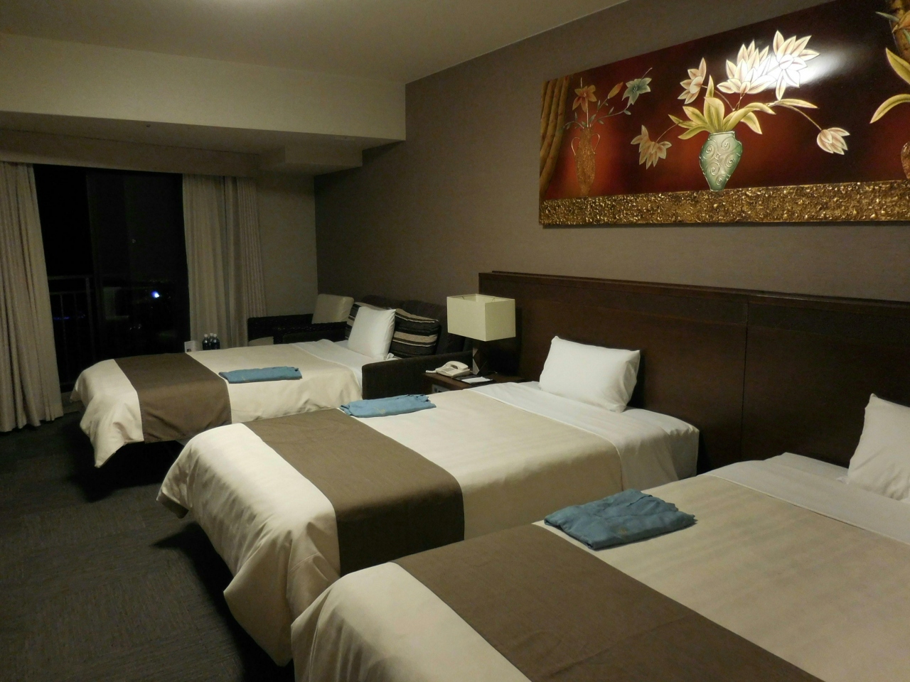 石垣空港からホテルの無料送迎バスがでているので便利なので利用しました。約40分で着きました。サンセットビューツインの部屋に泊まったが海が少し見える程度だった。部屋には、荷物置き場が2か所あり使いやすかった。部屋着として甚平が備え付けてありホテル内を歩いて良いので大浴場に行くのが楽だった。大浴場は、広い浴場とサウナ、露天風呂が付いていた。露天風呂は、浴槽に入りやすいように手すりがあった。浴槽の入り口の部分の中側が段々になっていた。この段々の部分が自然石のかたちを生かしてあり表面と境目が平らになっていなかった。その上段々の境目が同じような色なので判りにくく足を踏み外したり引っかけやすい。近眼のため良く見えなかったためつまずいて足の指を打ってしまった。次の日も一日中痛かった。露天風呂を利用する人は、注意しながらゆっくり足で探りながら入った方が良いですよ!屋上には、スターダストテラスがあり綺麗な星空を楽しめます
