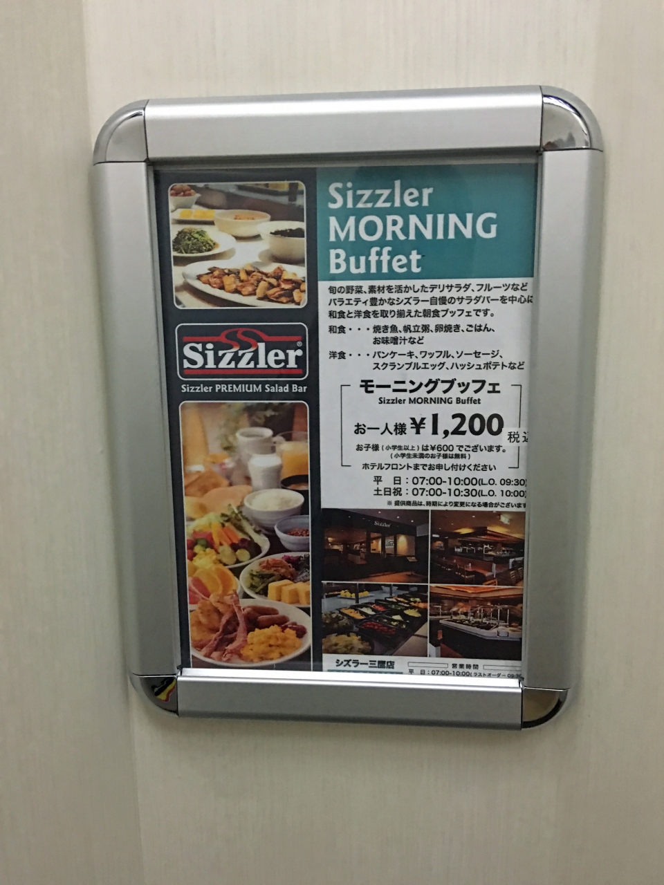 宿泊のみのシンプルステイプランです。夕食は、三鷹駅前の居酒屋でとりました。ホテルに戻ってくると、ロビーは、レストランSizzlerの順番を待つお客さんがたくさんいました。地域で人気のレストランとなっているようです。
