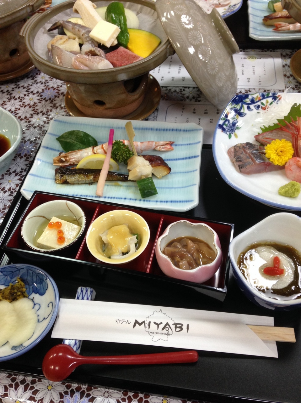 隠岐の島町の西郷港から約1キロ、歩いて15分ぐらいのところにあります。少し高台になっており、朝は漁に出る船が見えて良かったですよ。料理は隠岐の魚介を使用しておりとても美味しかったです。朝もさざえの壺焼きがついててうれしいですね。
