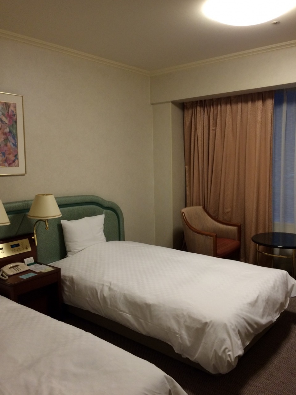 新幹線も停まる小倉駅の北側にある高層ホテルです。小倉駅北口の2階と屋根つきのペデストリアンデッキでつながっているので雨にぬれずに行けました。ただしフロントは1階にあるのでエスカレーターで降りる必要があります。大型の宴会場やヘルスクラブや複数の高級レストランやバーを備えたいわゆる高級ホテルで車寄せやロビー、通路は広々としており、駅周辺にたくさんあるビジネスホテルとは全く違います。部屋もツインルームのシングルユースでしたのでかなり広く、バスタブも洗面器具も大きかったので大変ゆったりとした気分で過ごせました。17階と比較的高層で周囲に高い建物がないので窓からの眺望もよかったです。朝食は2階のカフェテリアで和洋のビュッフェスタイルですが、ここだけは、品ぞろえも味もビジネスホテルをやや高級にした程度だったので、客室やサービスとのレベルの差が感じられました。航空券込のツアーでしたので厳密なホテル代はわかりませんが、ほぼビジネスホテル並みの料金で泊まれたので大変コストパフォーマンスは高いと思います。また今回程度の値段であれば、今度は朝食なしで宿泊しようとおもいます。